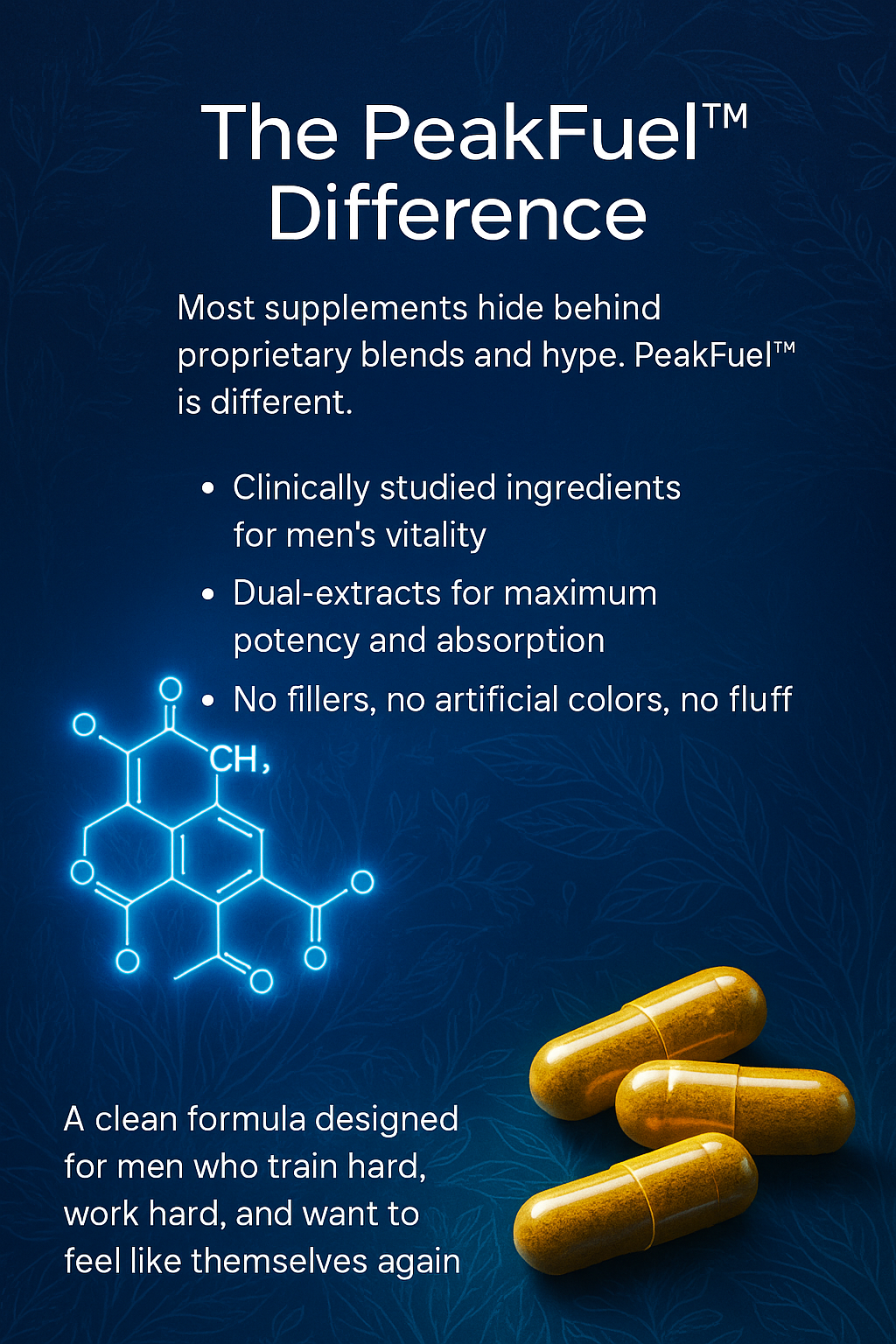 PeakFuel™ is made for men who stay in the arena — in the gym, at work, and in life.